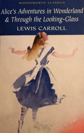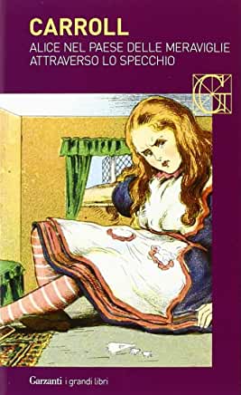 Two objects, each composed by a stack of usually rectangular pages (346 and 288 respectively) made of paper oriented with one edge fixed together and then bound to the flexible spine of a protective cover of heavier material, containing a text written by someone (Lewis Carroll) in a natural language (Italian and English respectively)