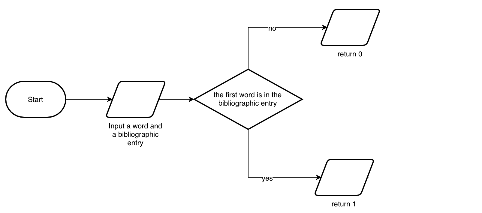 Consider two different strings as input, i.e. a words and a bibliographic entry of a published paper, and return 1 if the bibliographic entry contains the word, 0 otherwise