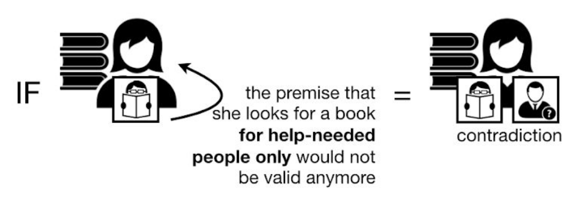 Idea: to come to a paradoxical and self-contradictory situation in which, for instance, the existence of an algorithm contradicts its existence itself