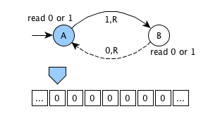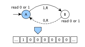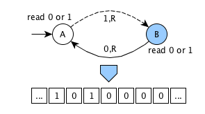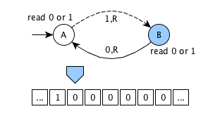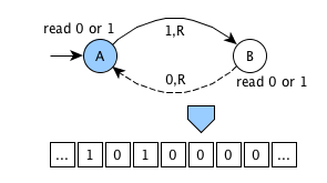 an infinite memory tape containing cells - each cell can contain 0 (blank symbol) or 1