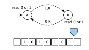 The previous simple machine can compute indefinitely (there are no ending states)